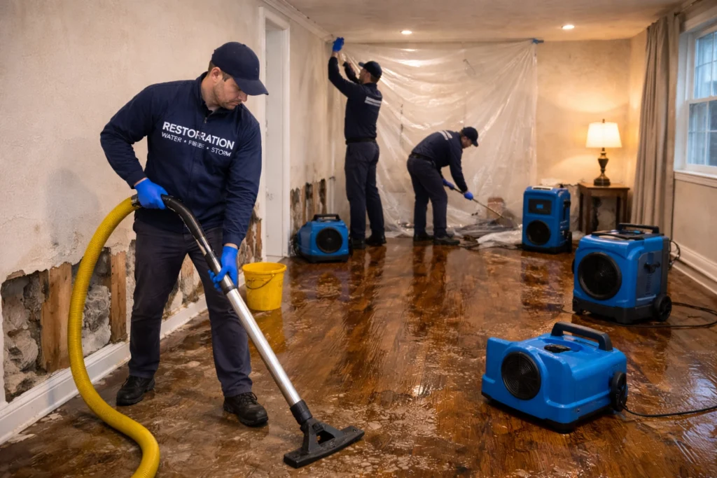 A fast response to help address damp areas after leaks, storm-related water entry, or recent moisture exposure.
