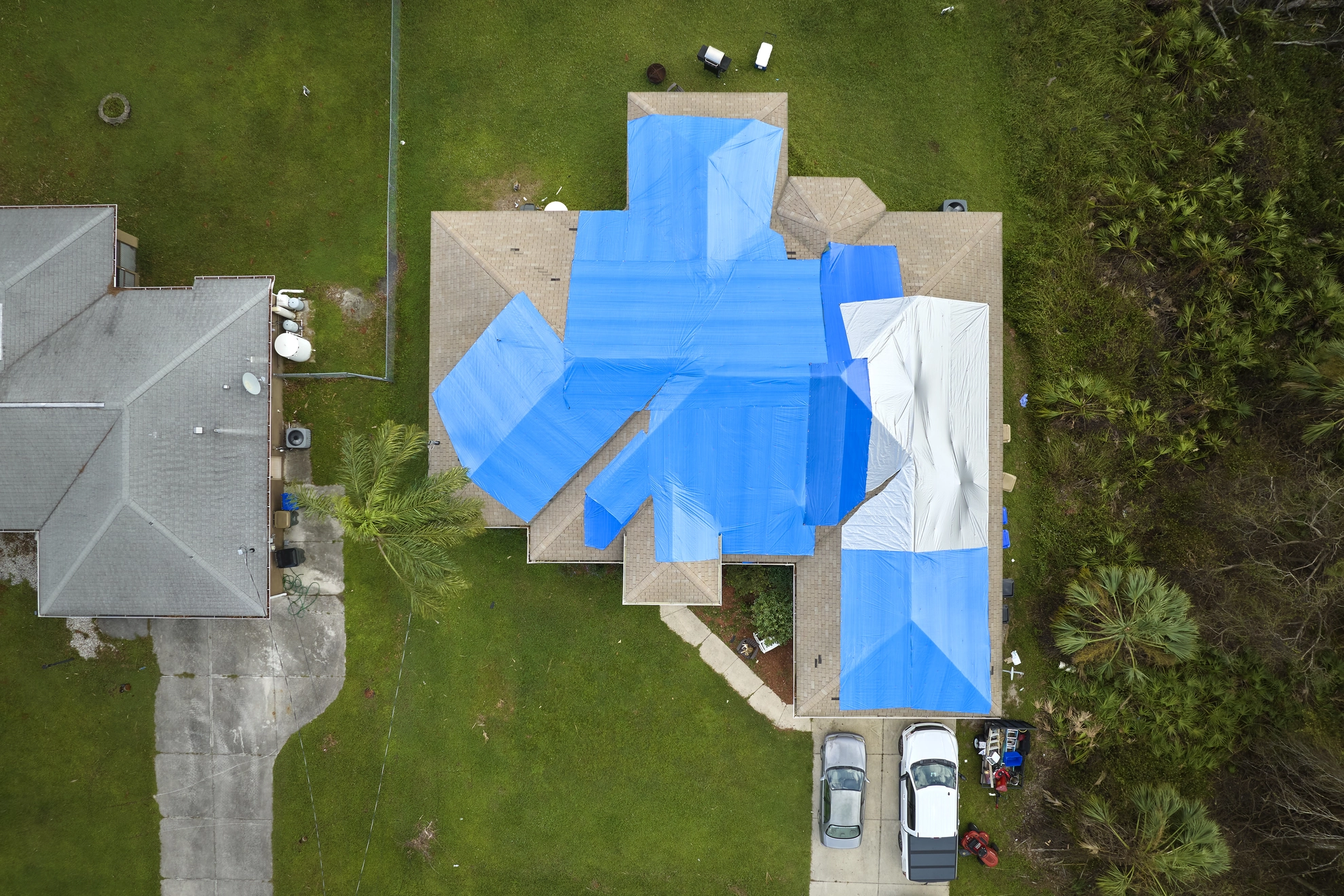 Emergency tarping can help reduce additional water entry while the next repair step is assessed.