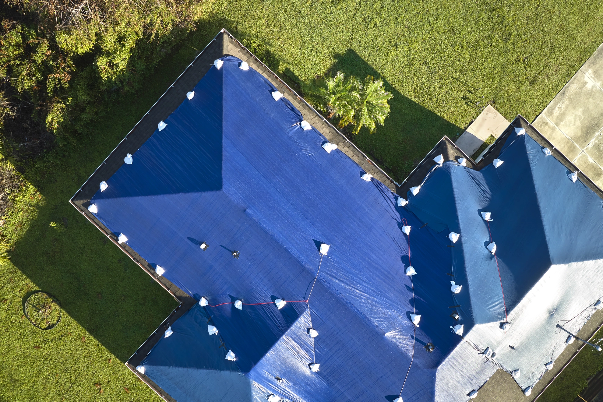 After storm damage, tarping can help protect vulnerable roof areas from further exposure.